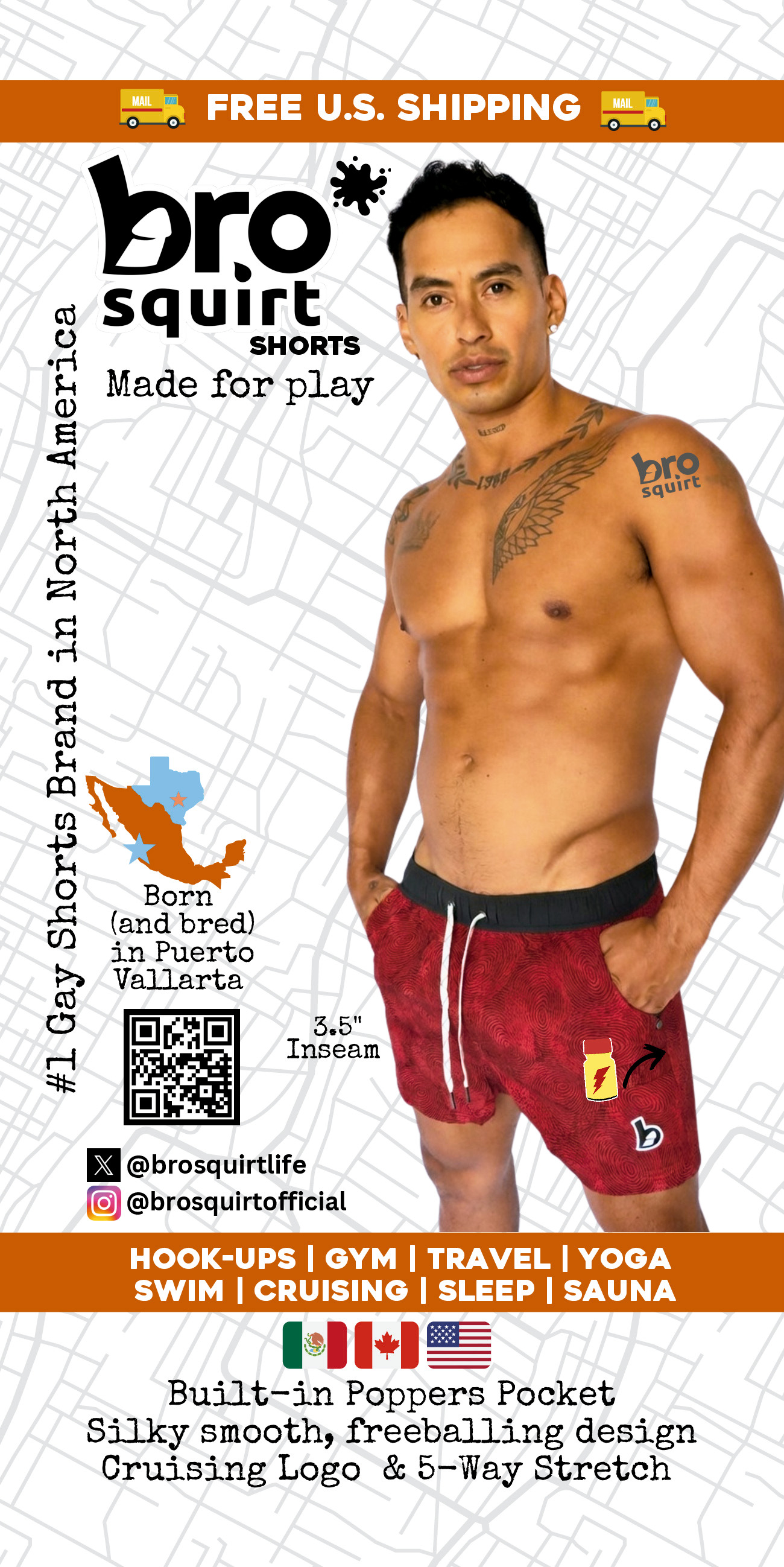 Welcome to Brosquirt, where we’re all about embracing that wild side and feeling damn good while doing it. These shorts? Well, they’re not just your average shorts; they’re your partner in crime, whether you’re scoping out your gym locker room scene, cruising the running trails down by the lake, or even just kickin’ it on the couch with your bud. Crafted with top-quality materials and stamped with our unmistakable logo, Brosquirt shorts are about confidence and a playful bro-on-bro adventure vibe. Because life’s too short to be boxed in, right? Forget about those other brands; Brosquirt is where the magic happens. Those pricey Lululemon and Vuori shorts won’t get you laid. Slide into a pair of Brosquirt shorts and let ’em know you’re not just a guy; you’re a bro who’s up for anything. So go ahead, embrace the adventure, and dive into Brosquirt. You won’t regret it.
